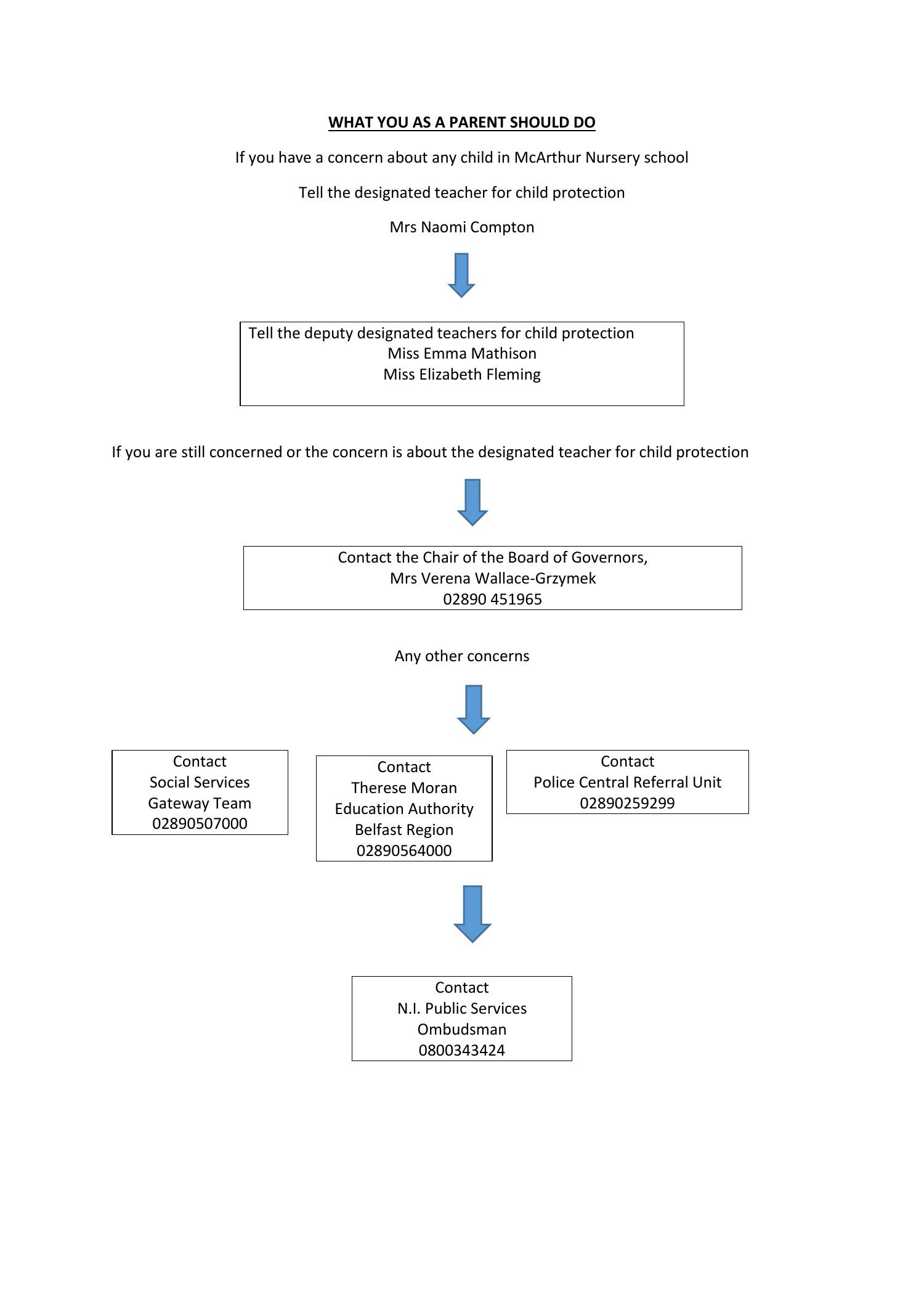 Above is a Flow chart for Parents information if you have any concerns about Child Protection.